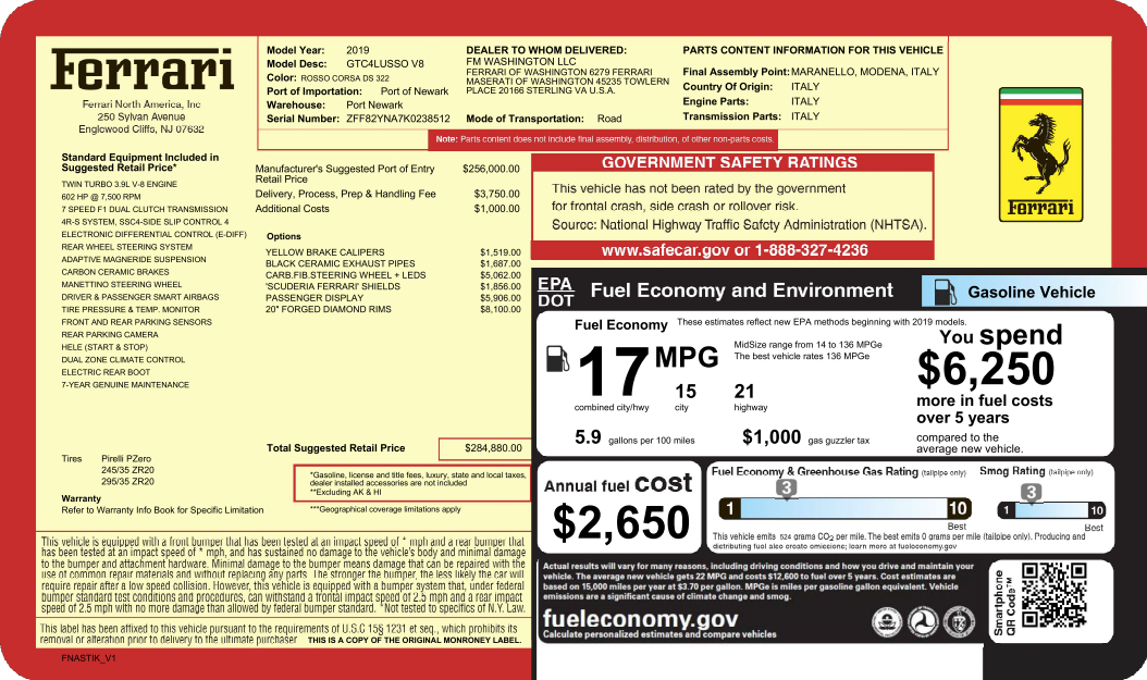 *** HIGH WINDOW STICKER *** MSRP $284,880 ***